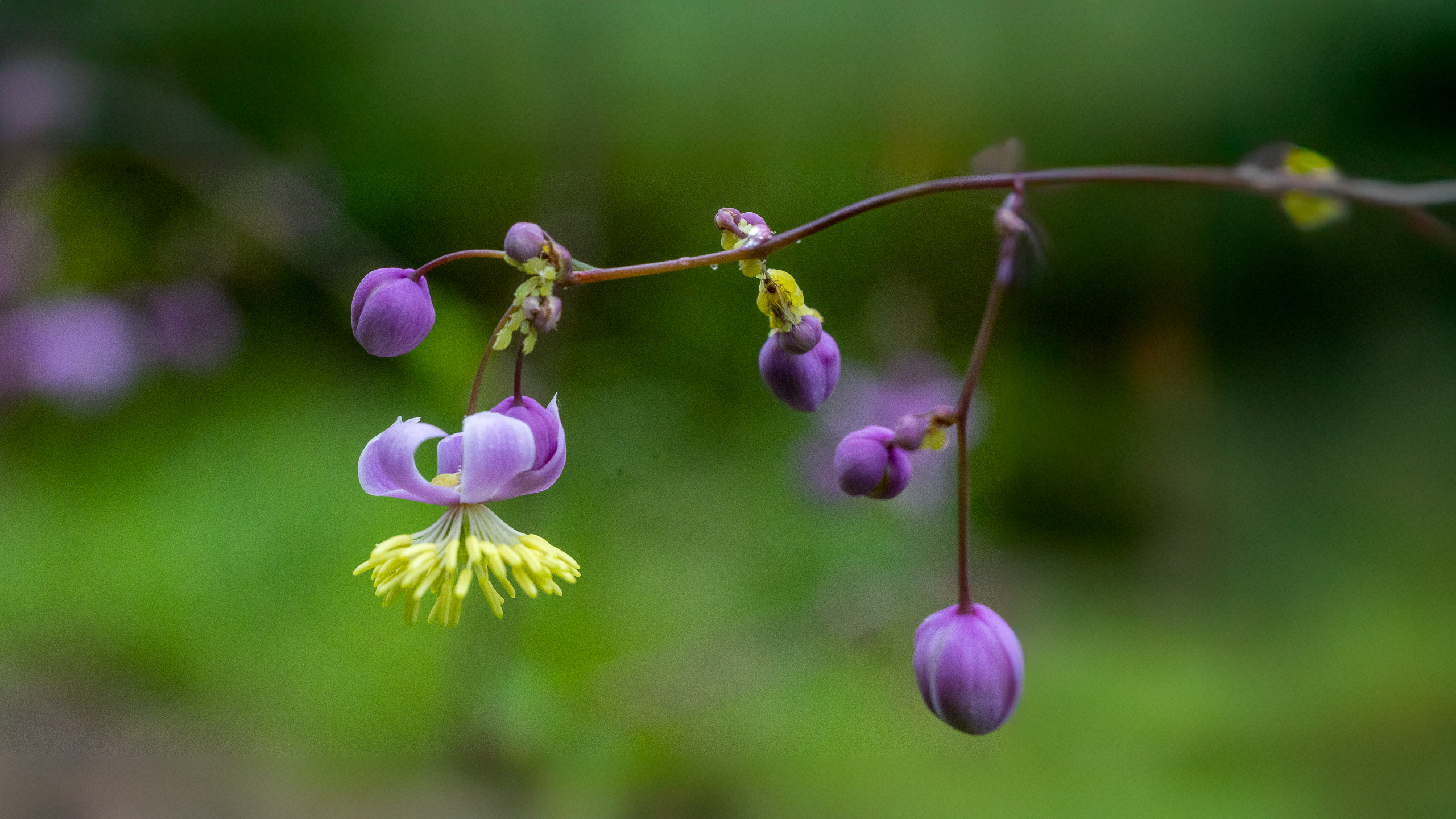 금꿩의다리는 꿩의 다리를 닮은 가녀린 줄기 위에 황금색