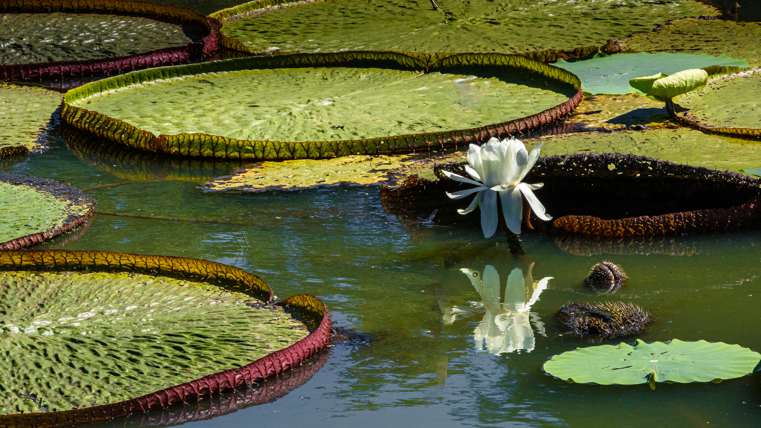 세계에서 가장 큰 잎을 자랑하는 빅토리아연이 우아한 자태를 뽐내고 있었다.