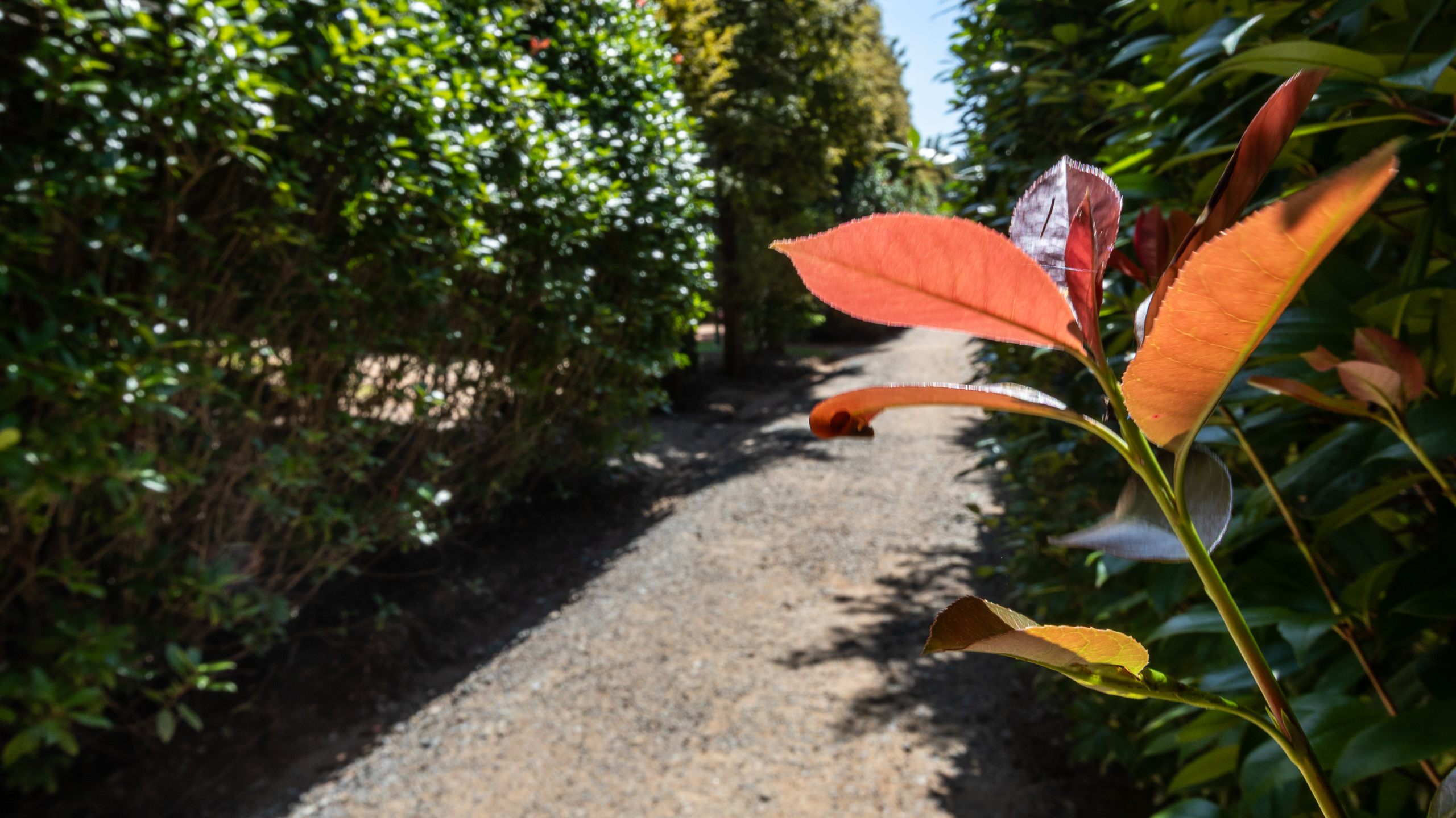 붉게 돋아난 새순이 매력적인 홍가시나무 터널과