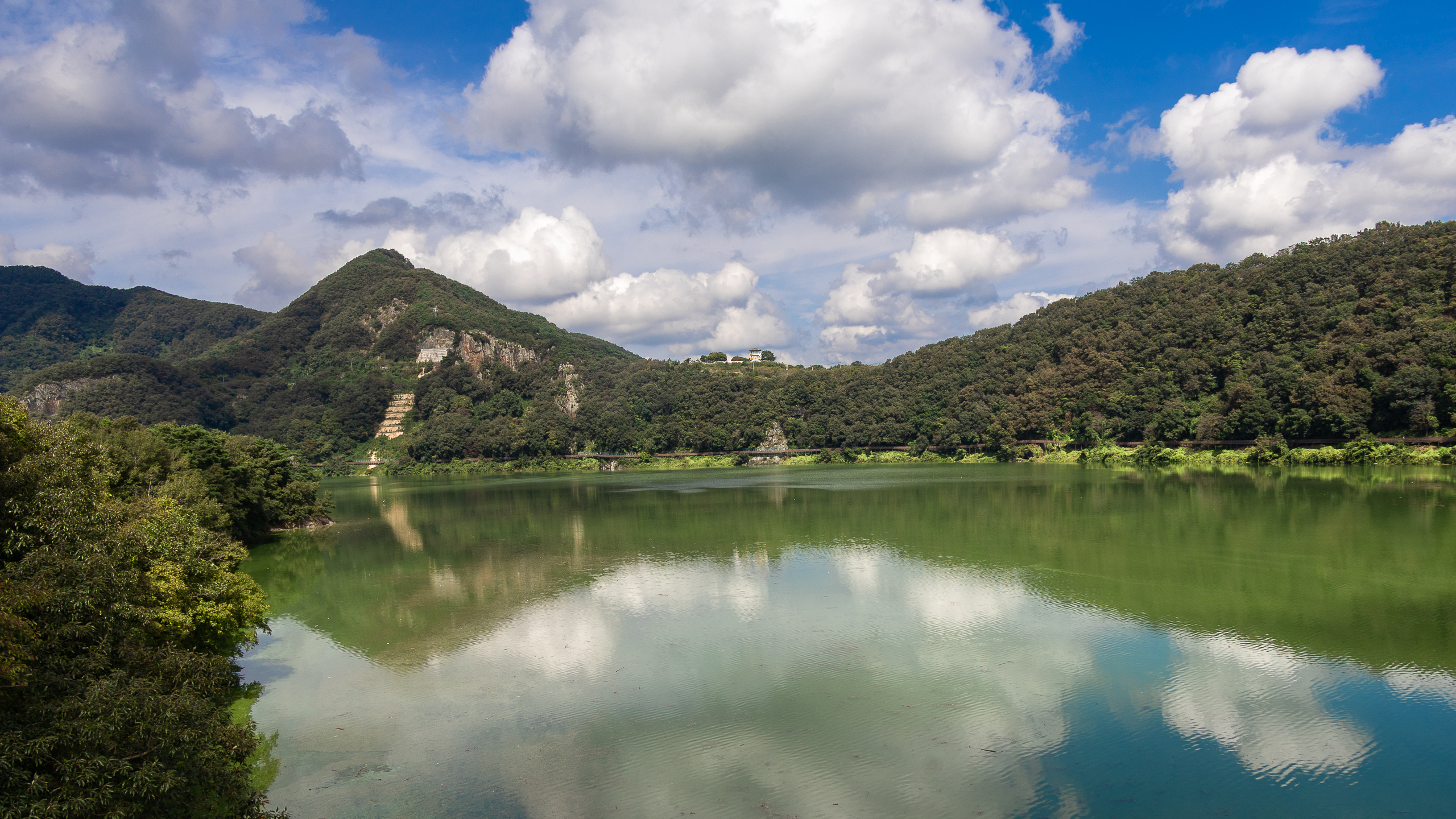맑은 호수면은 하늘의 구름을 그대로 투영하여 신비로운 장관을 연출한다.