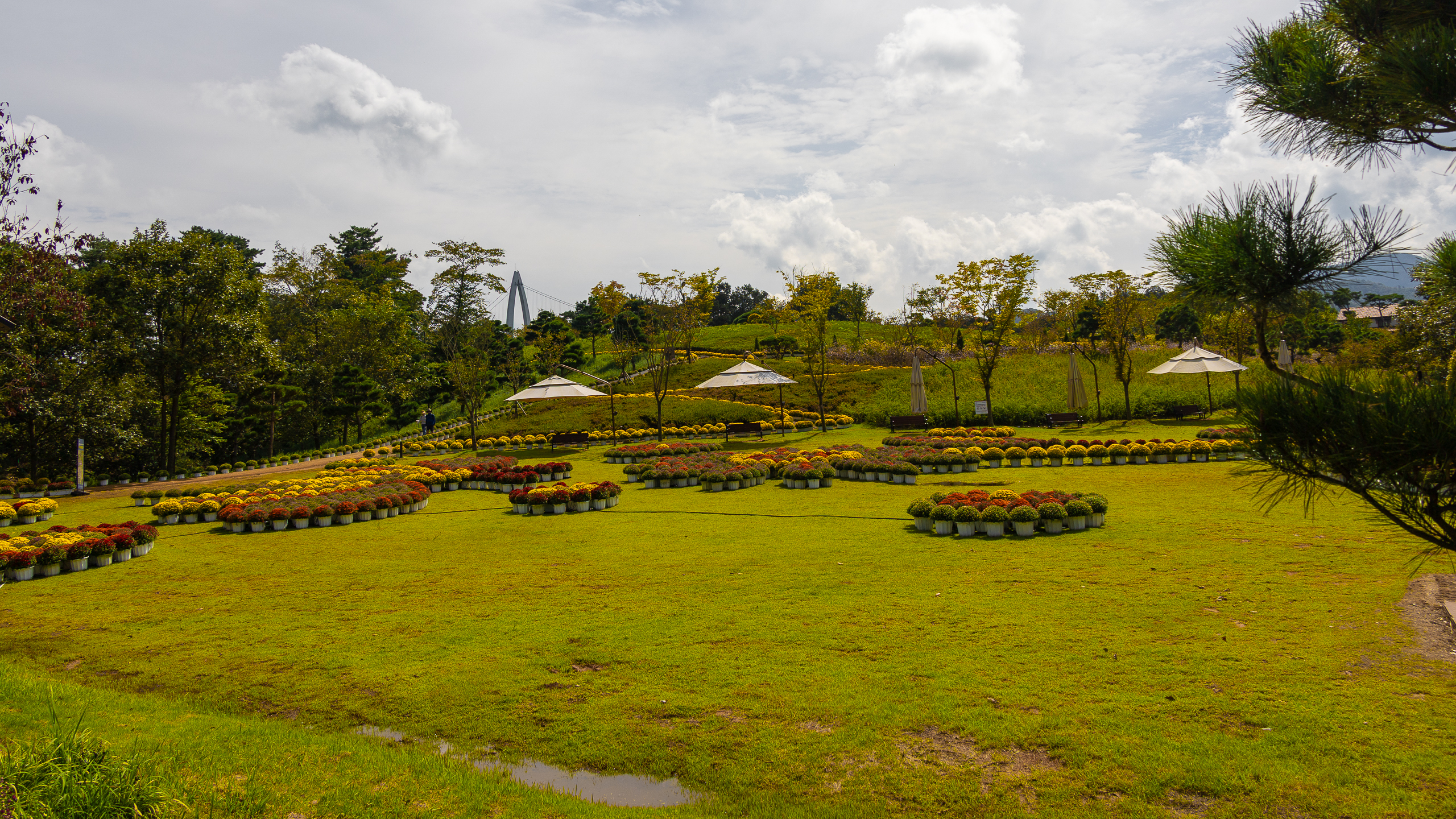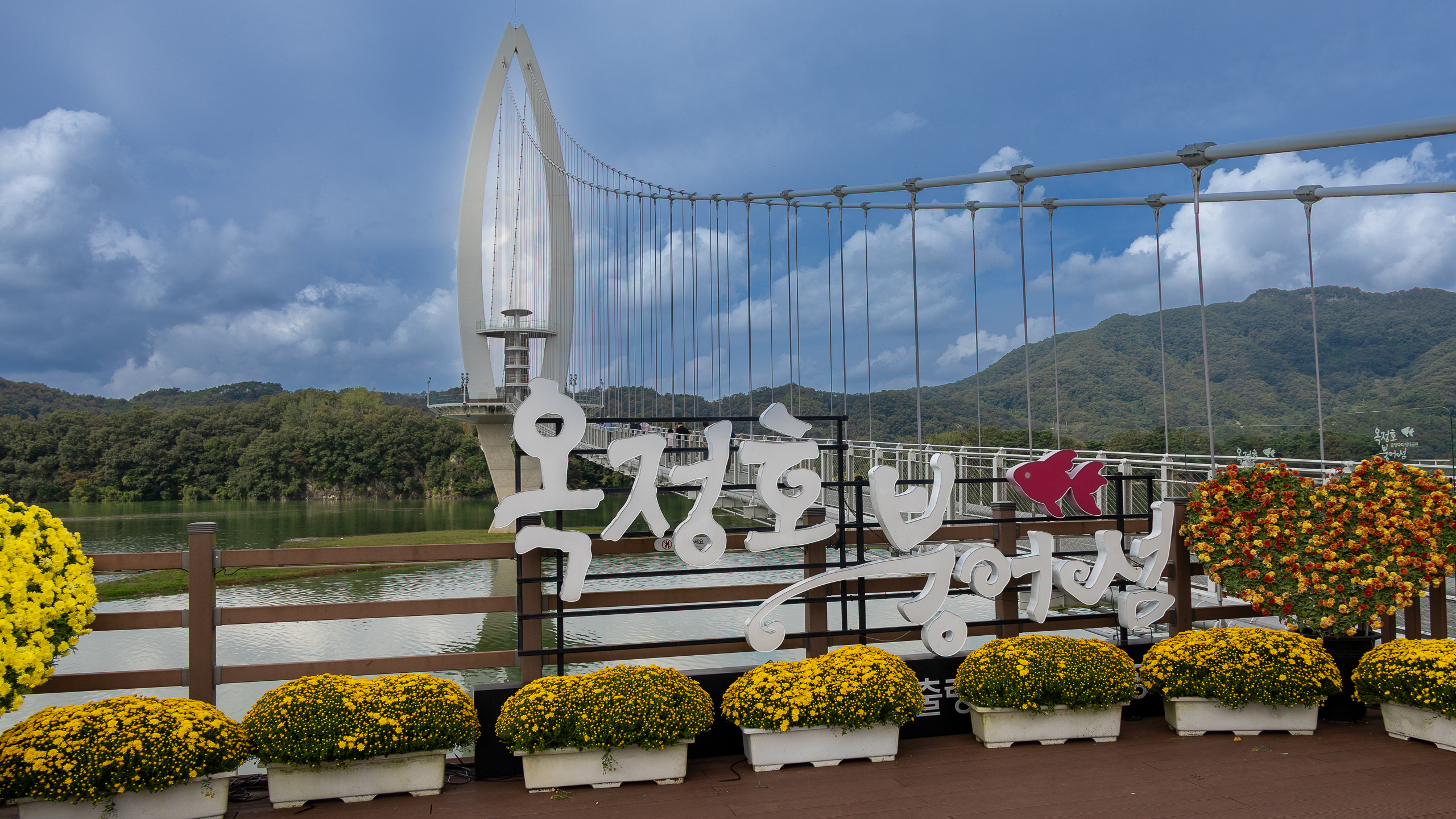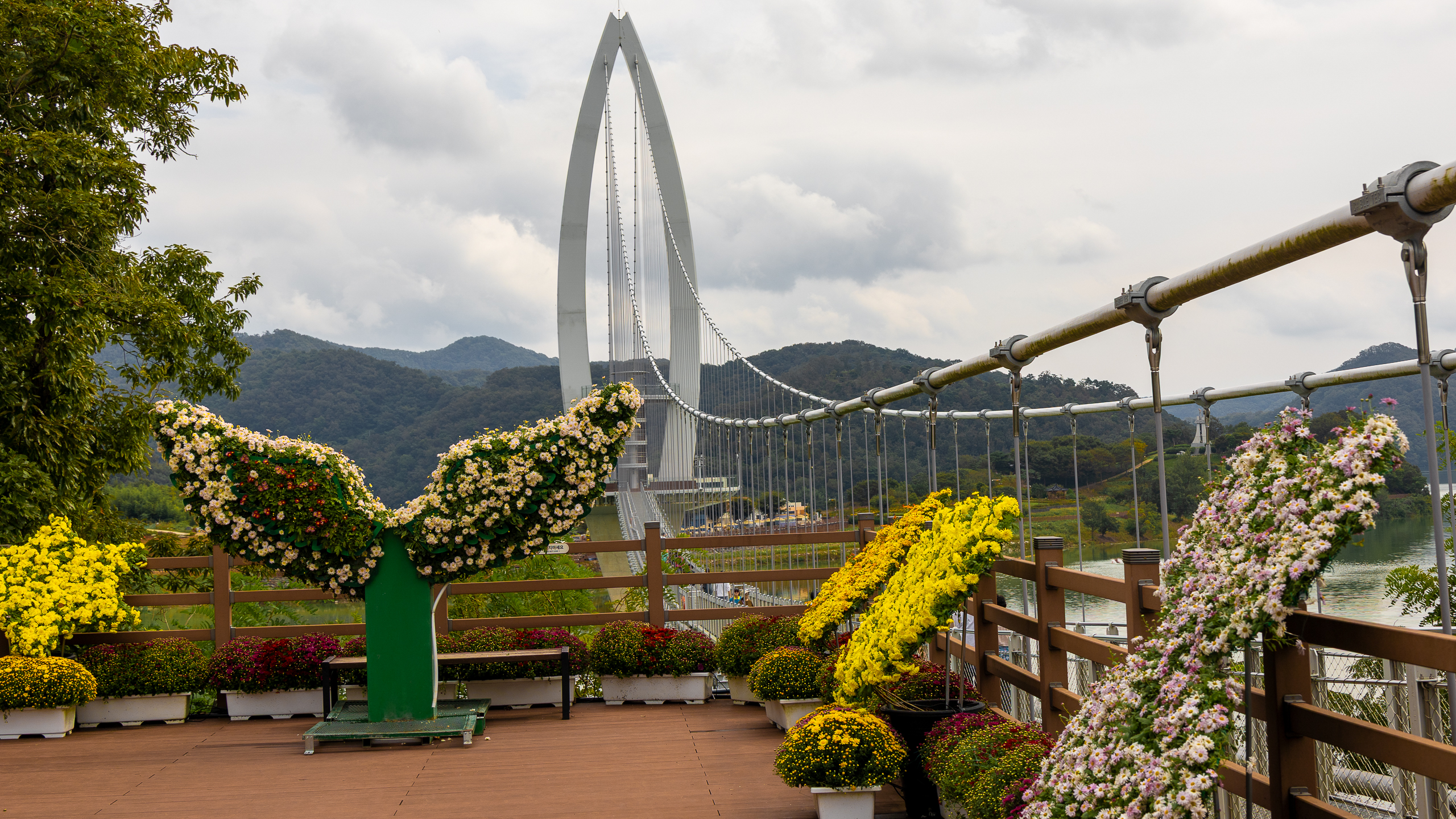 그리고 그 뒤로 보이는 출렁다리가 조화롭게 어우러져 멋진 포토존을 완성한다.