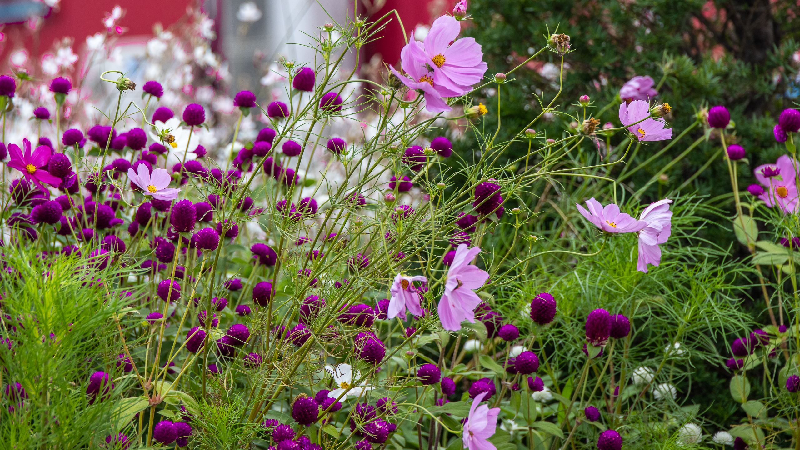 꽃밭을 가득 채운 여러 종류 중,