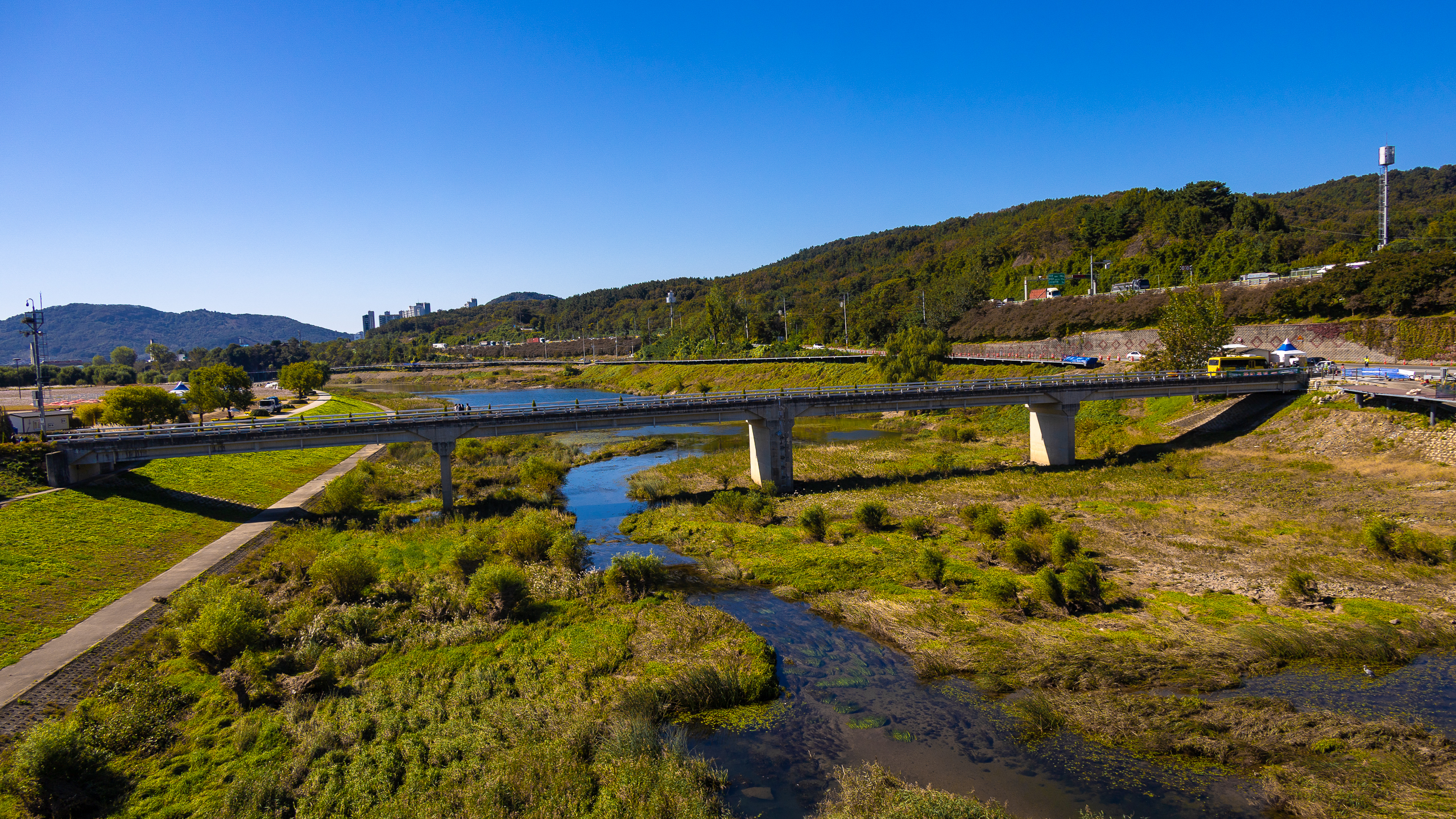 대구 금호강에 자리 잡은 하중도는 도심과 인접하면서도