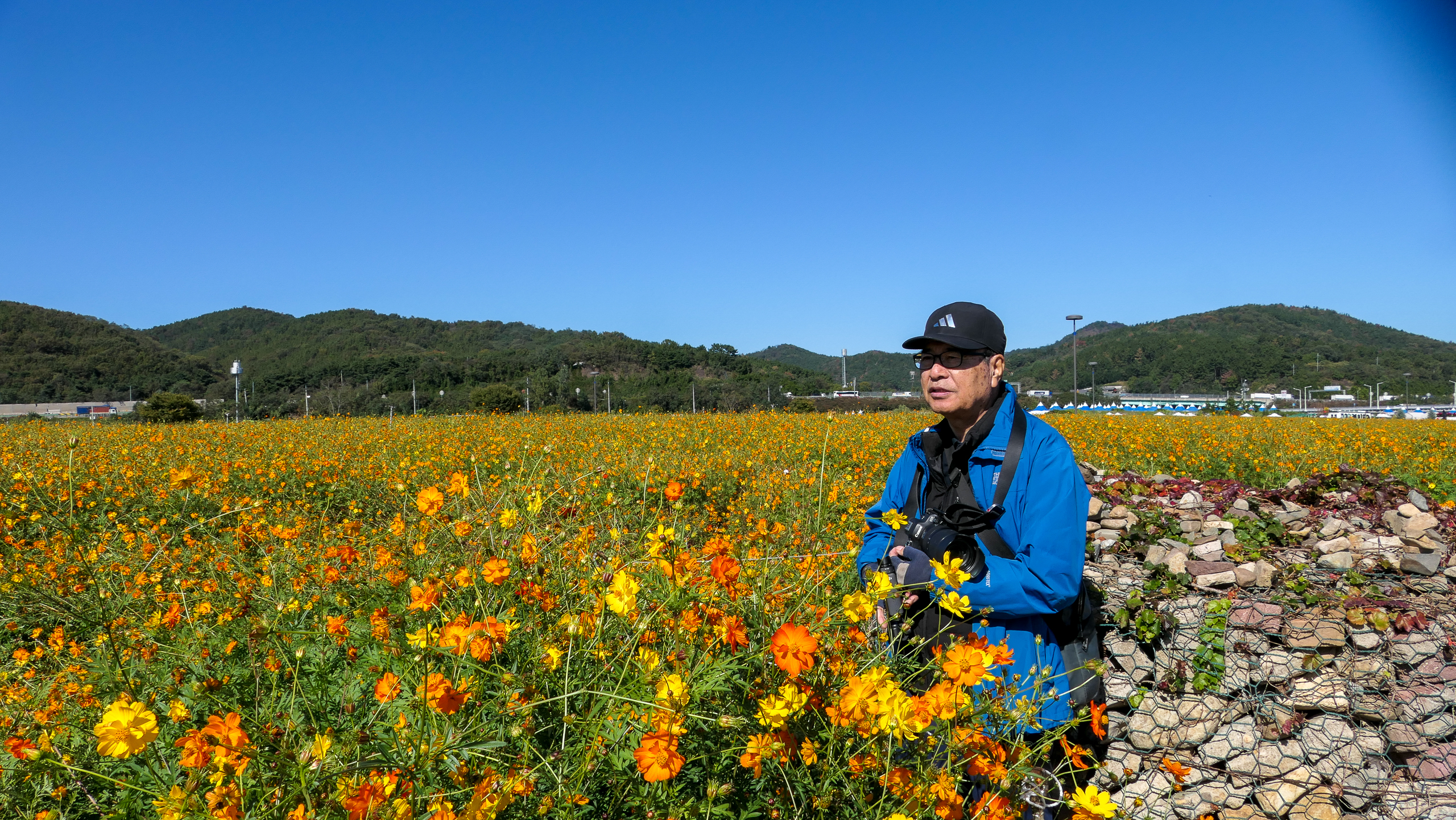 끝없이 펼쳐진 코스모스 밭은 분홍색과
