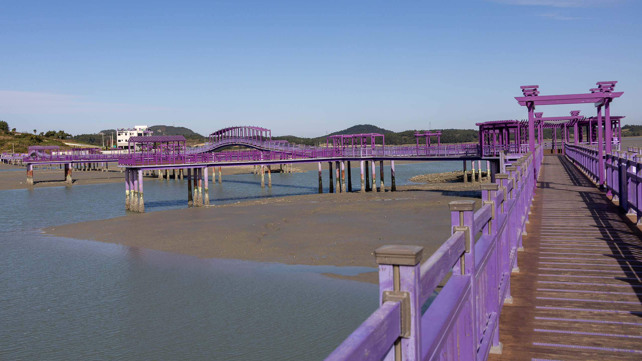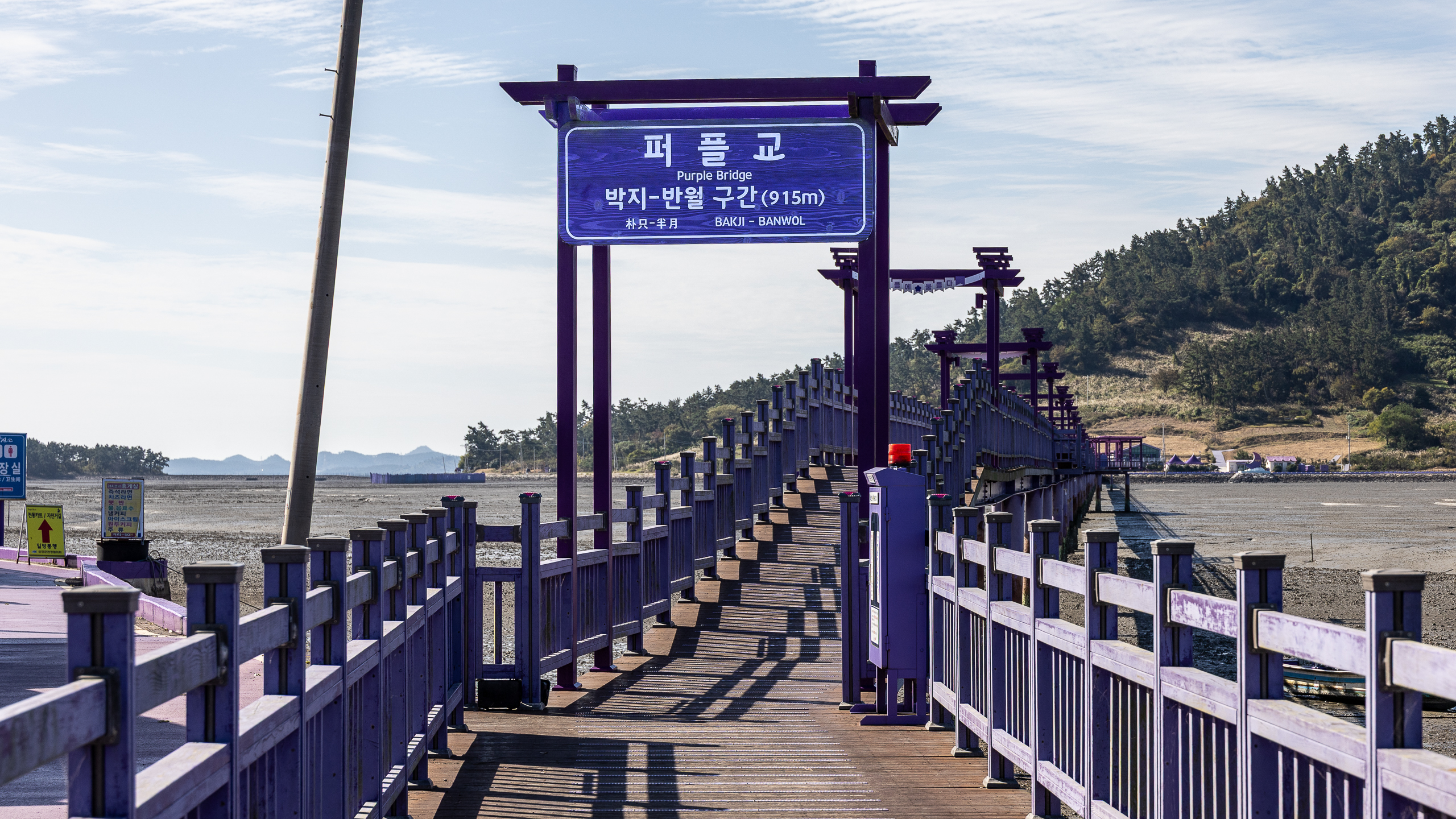 안좌도와 반월도, 박지도를 잇는 퍼플교는 915m에 달한다.