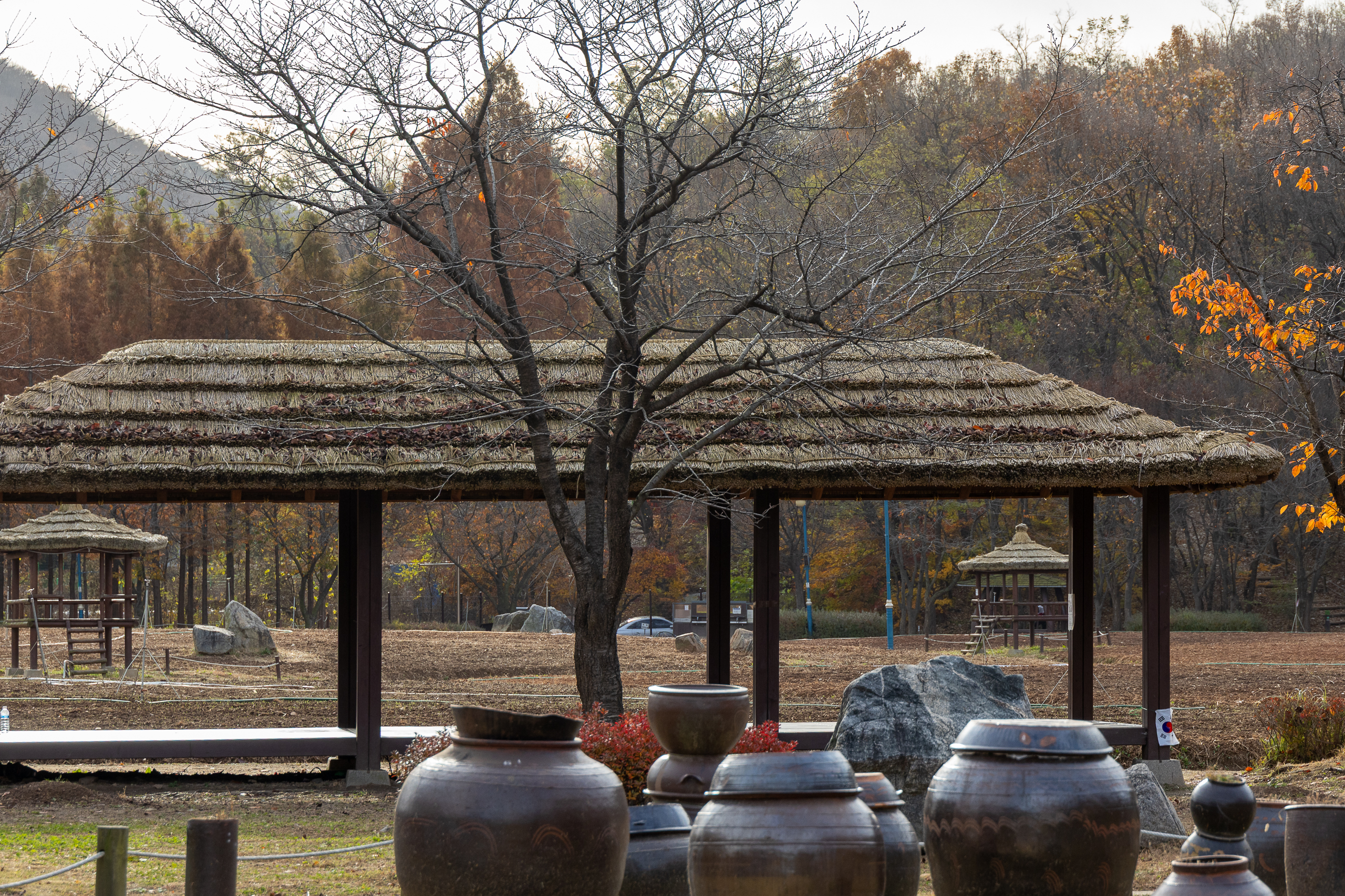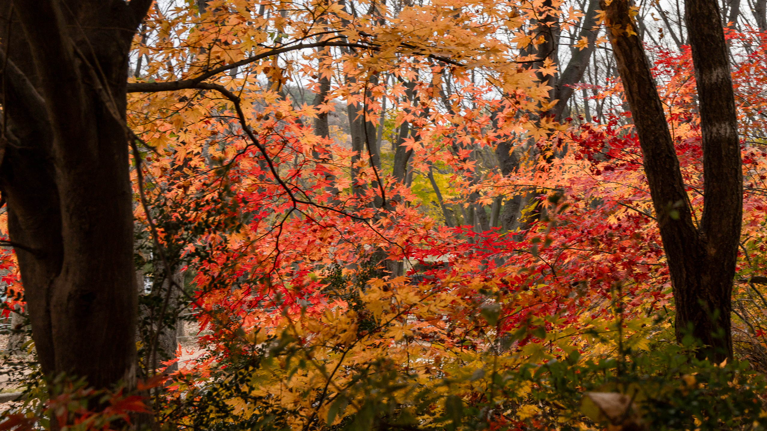 깊은 가을의 색이 공원 전체에 스며들고 있다.