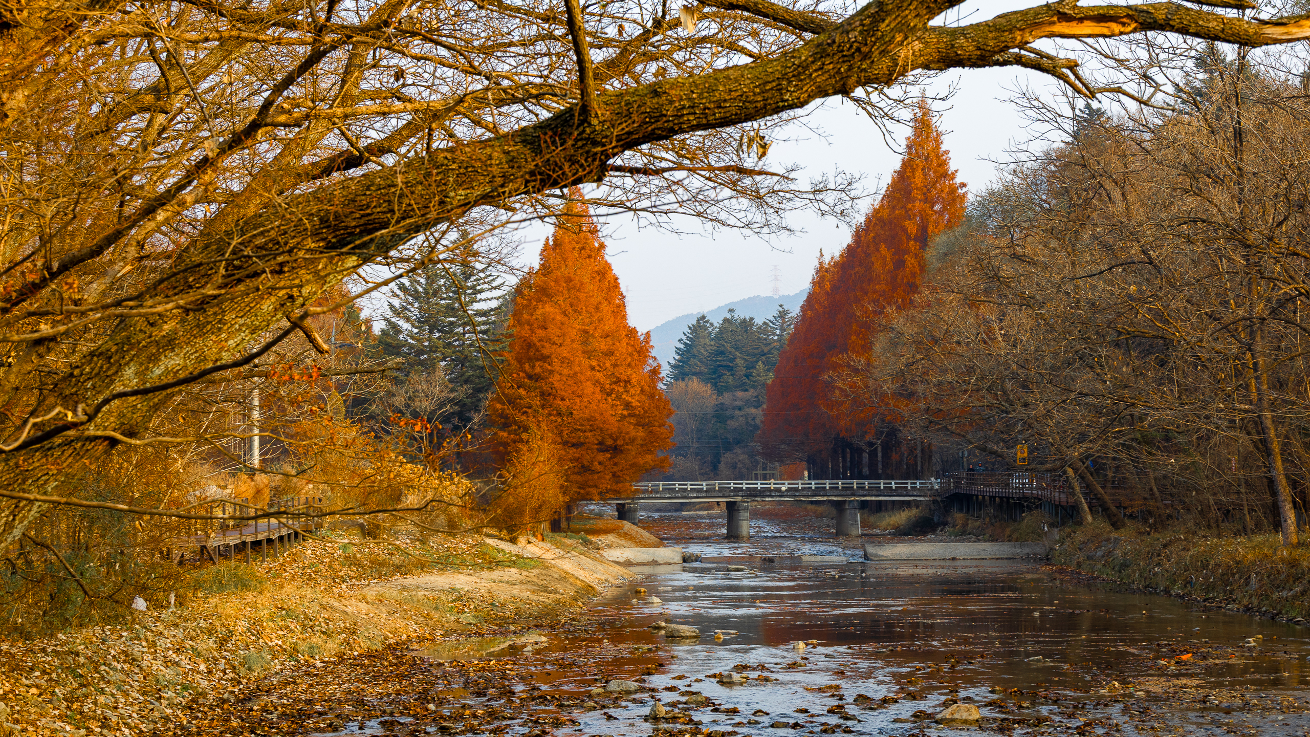 메타세쿼이아 숲은 마지막 불꽃을 태우듯 황금빛으로 붉게 물들었다.